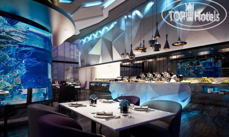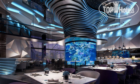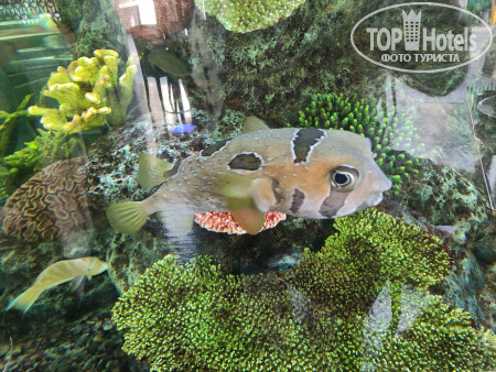 Отель весь в подсветке. Особенно это смотрится вечером. Аквариум очень красивый.