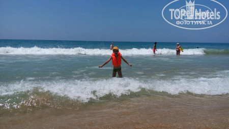 Пляж - очень классный заход в море, ни одного камня. Но, очень сильные волны, волнореза нет. Нам было весело, но кому то такие волны не по душе.
